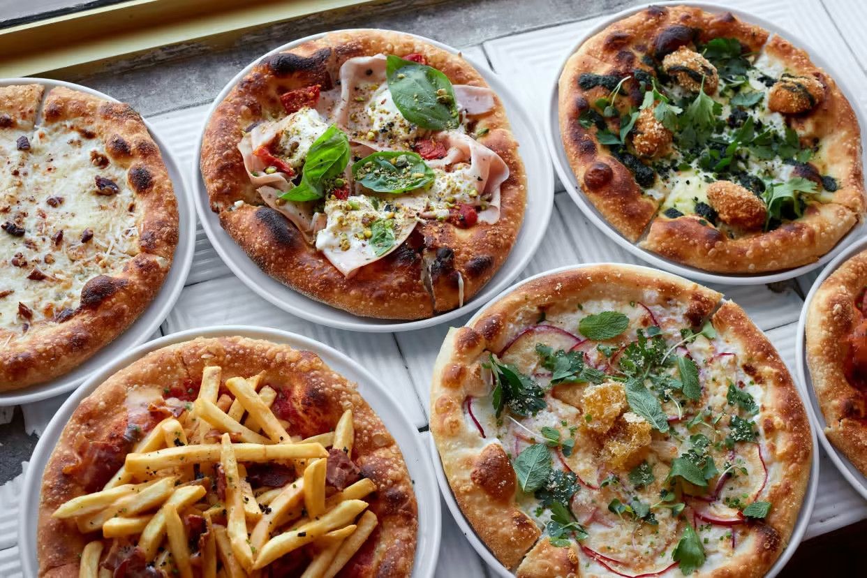 мортадела, фісташки, в’ялені чері, фермерська страчателла + анчоусний cоус до бортиків