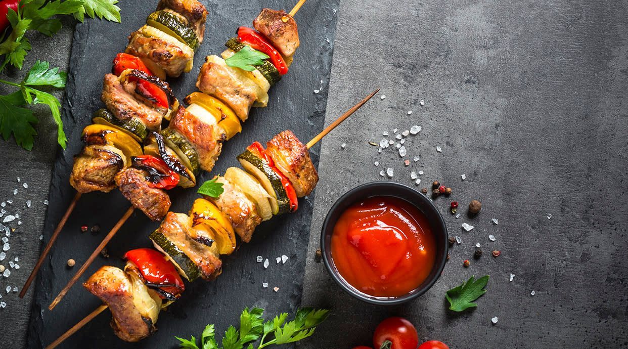 Шашлик із курячого стегна+Картопля+Баклажани по-грузинськи.