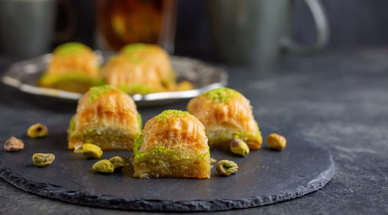 Солодкий, соковитий десерт з десятків тоненьких прошарків хрумкого листкового тіста, витриманих у цукрово-медовому сиропі та фісташок