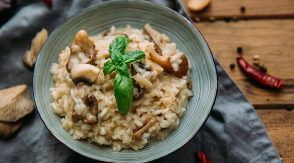 Ориз, пилешко, месо, бекон, лук, гъби, пармезан