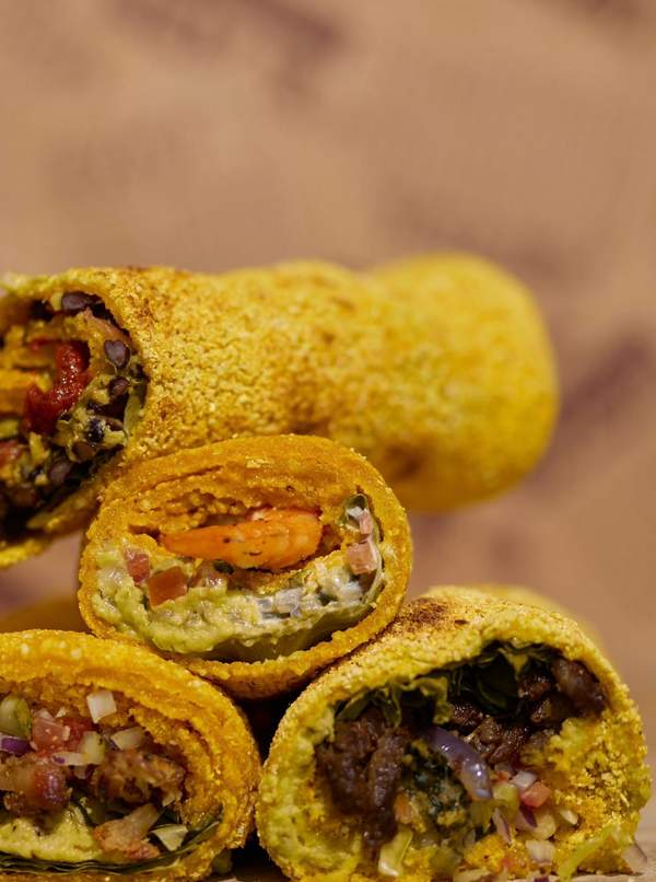 Sans gluten. Bananes plantains, viande hachée, soja, crudités, sauces maison