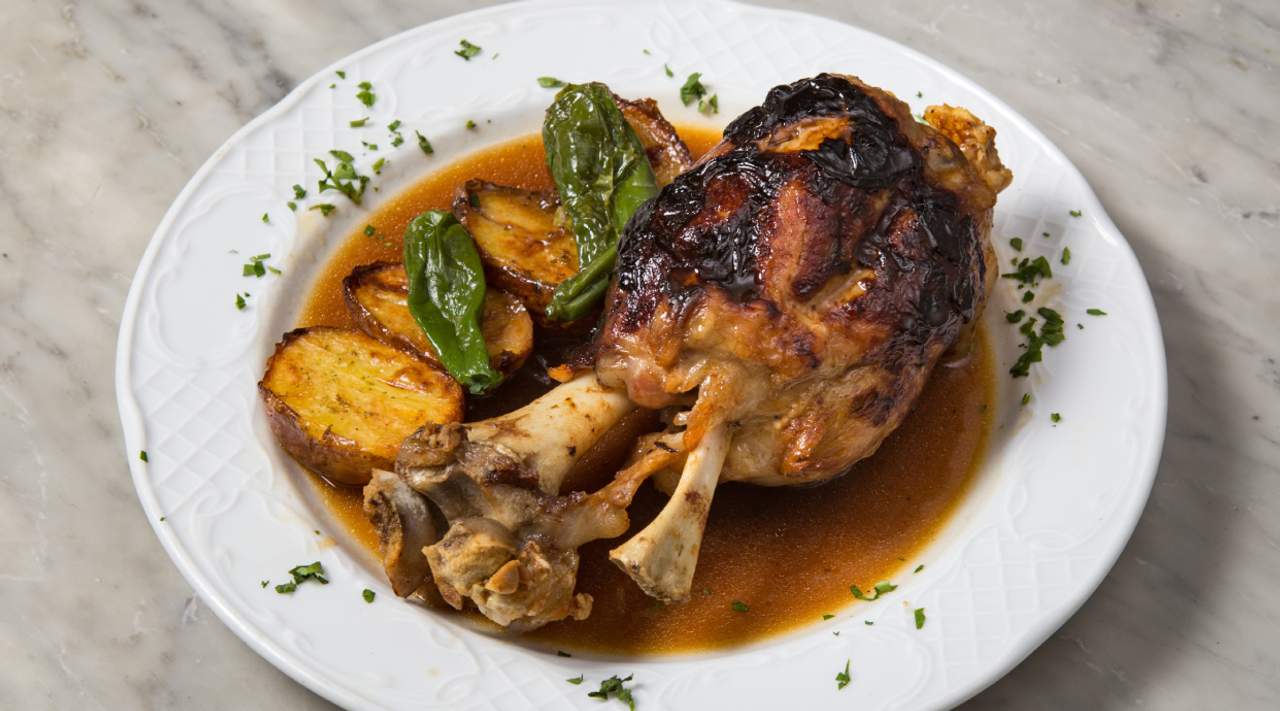 Muslo y contra muslo de pollo al curry suave con pasas y frutas