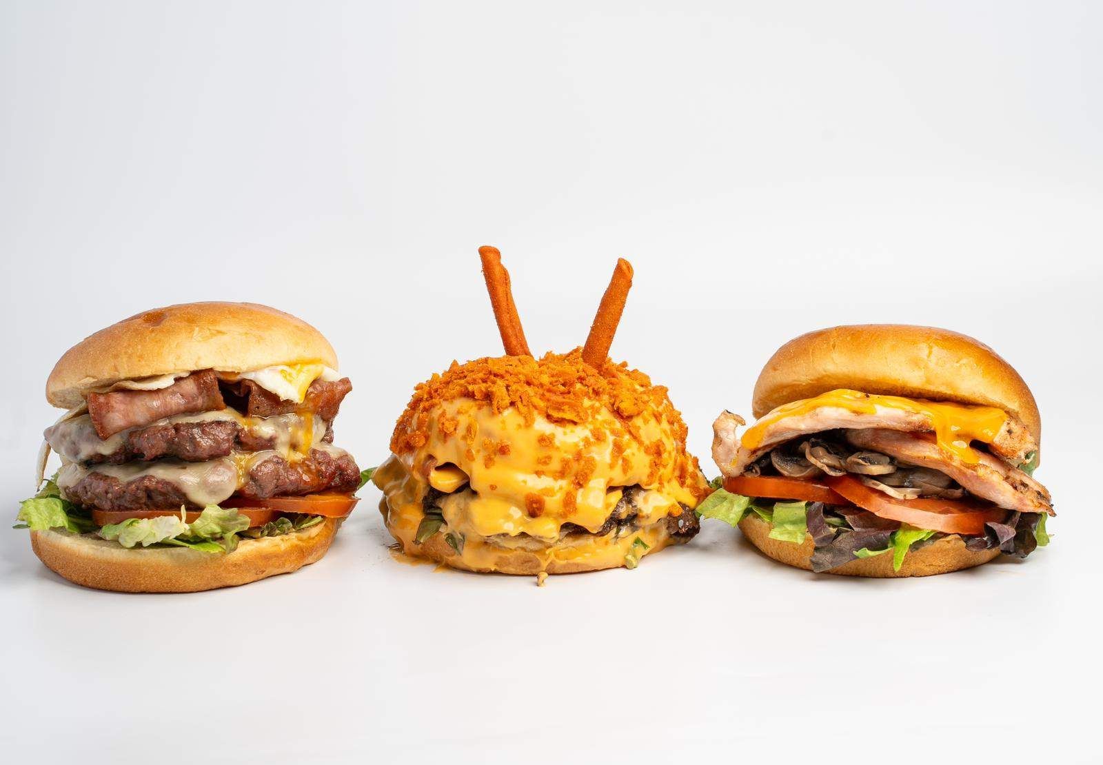 Doble de carne de vacuno estilo smash, doble de bacon, doble de queso cheddar y cebolla caramelizada
