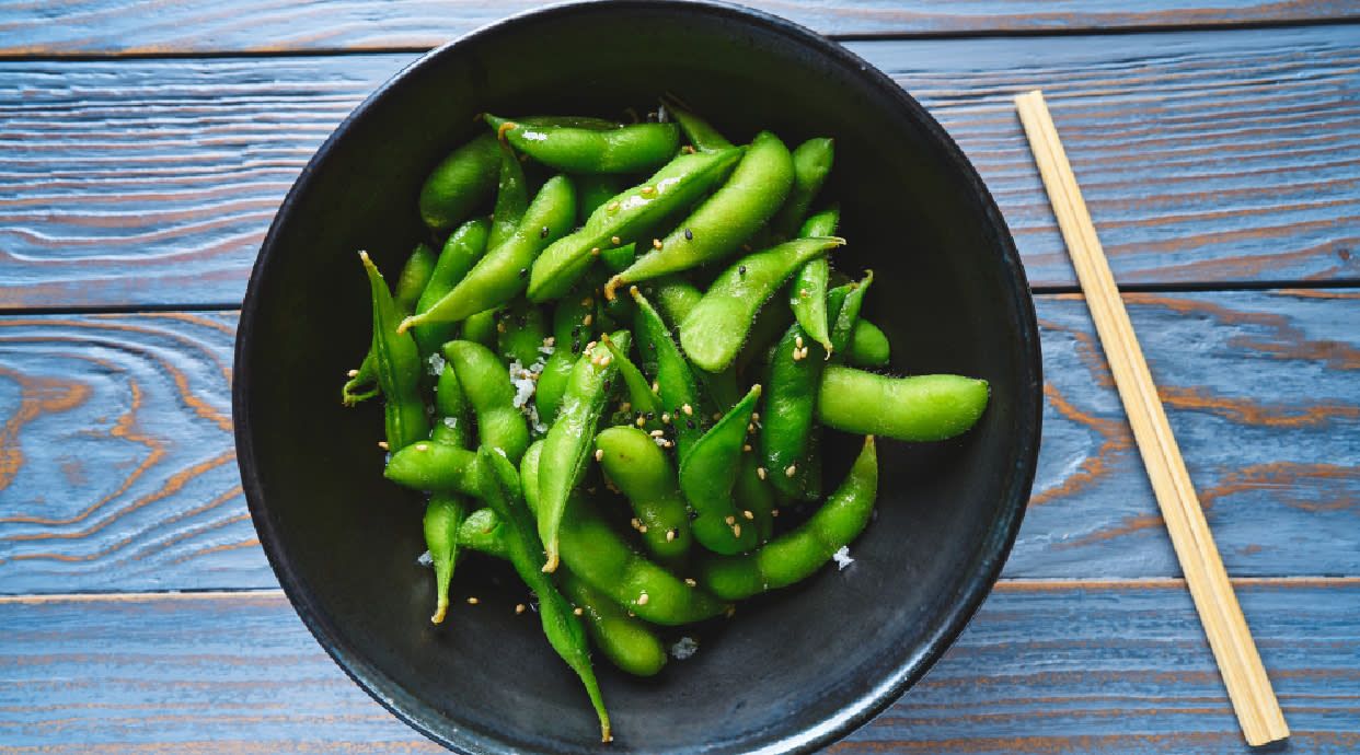 Judías de soja fresca cocinadas al vapor con un toque de sal.