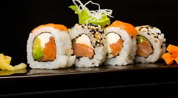 Salmón con aguacate y queso crema, y sésamo por fuera