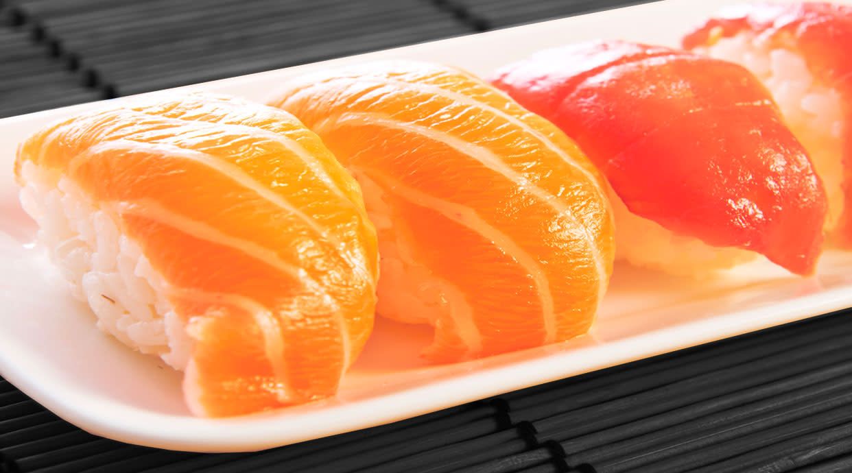 Oceánico roll (4 uds.), maguro roll (4 uds.), maki de salmón (4 uds.) y nigiri de langostino (2 uds.)
