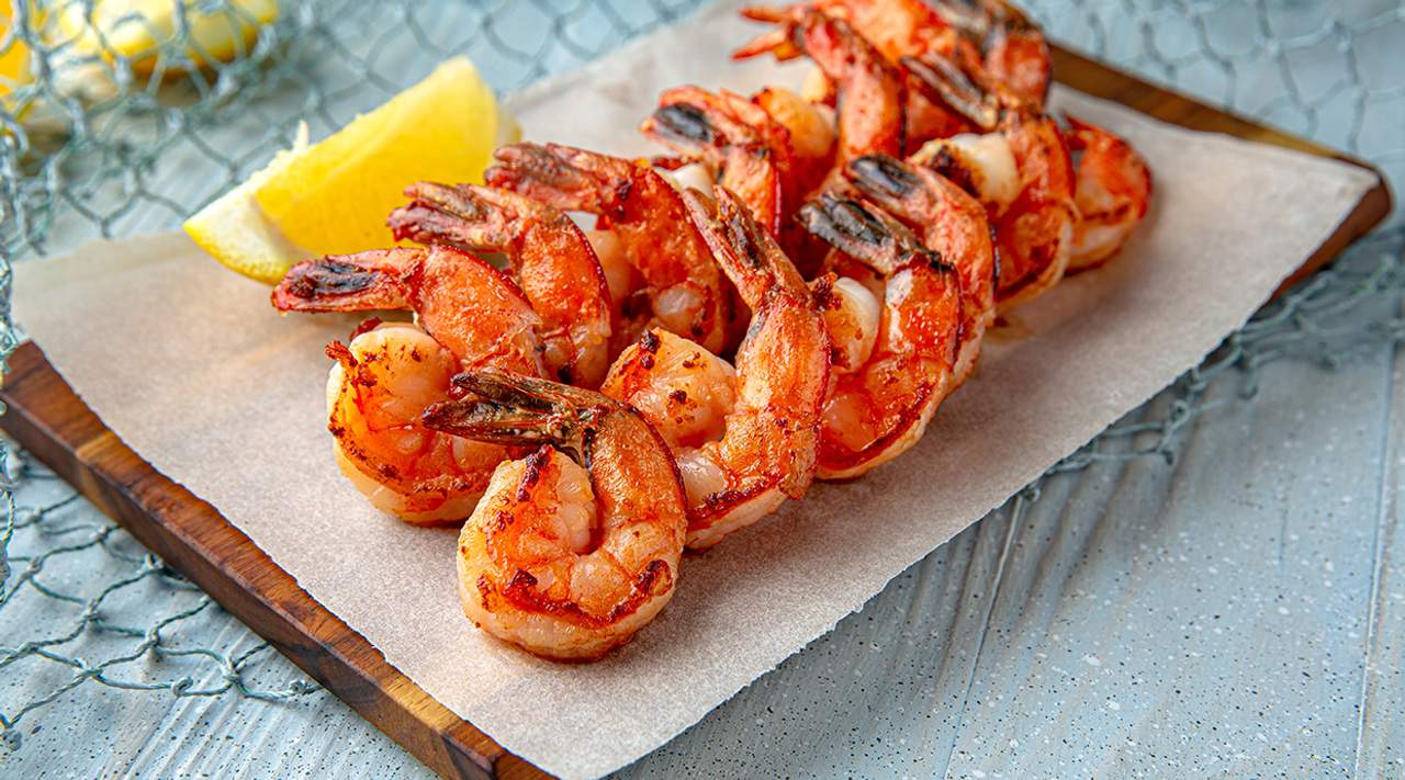 Gambas grandes a la plancha con sal gorda, jugosas, intensas y muy frescas