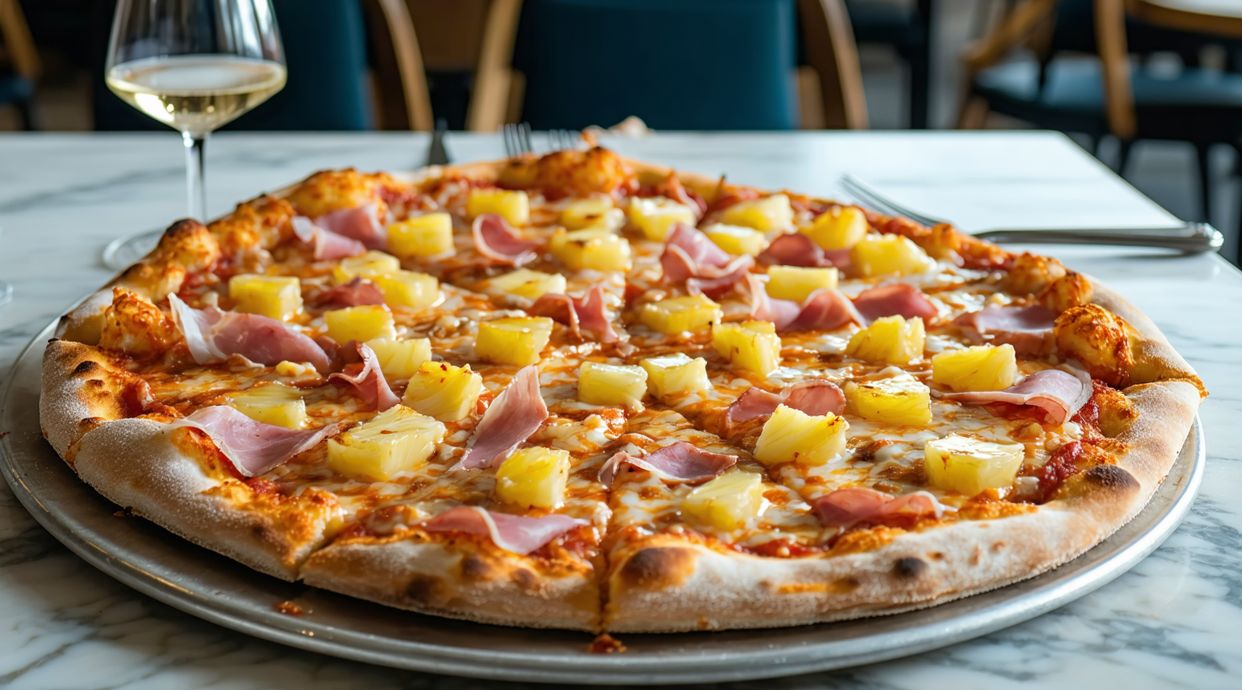 Mozzarella, tomate, xamón e piña