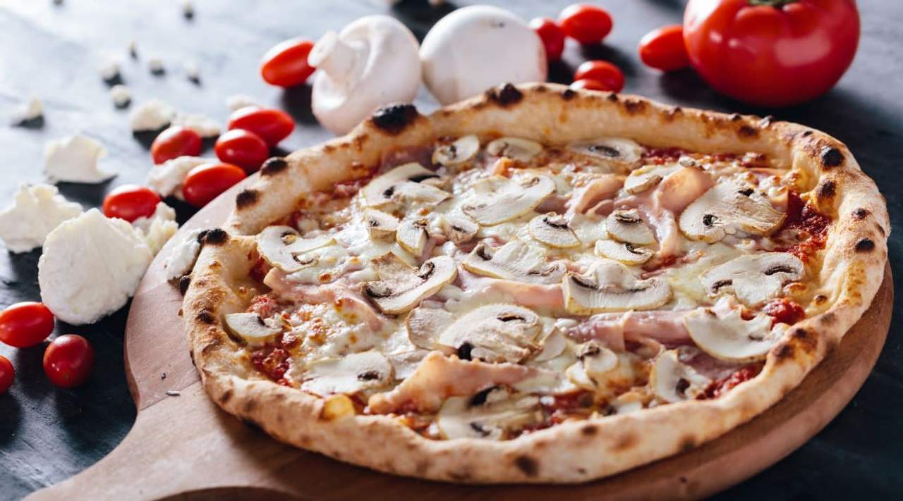 Masa fresca con base de tomate, mozarrela, jamón york, y champiñones 100% frescos y naturales