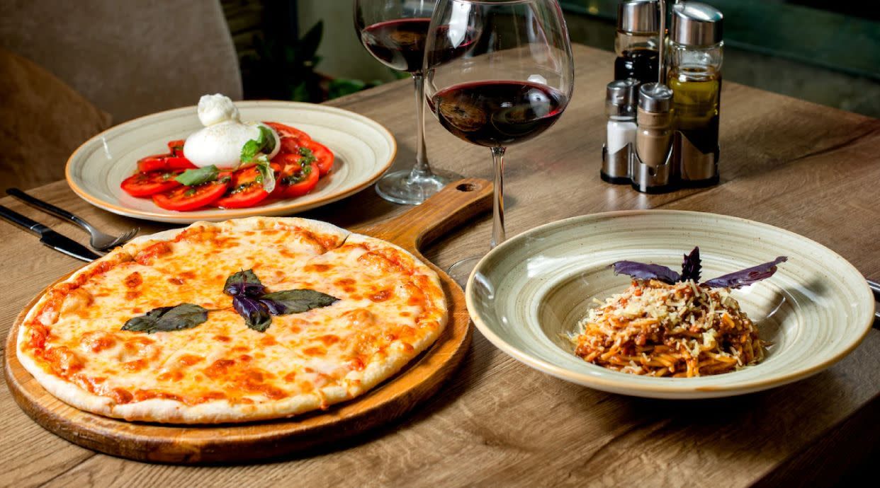 Tomate, mozzarella, jamón York, orégano y AOVE