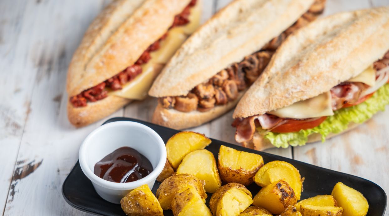 Pan de levadura de cerveza pollo crujiente cebolla pochada lechuga tomate y queso