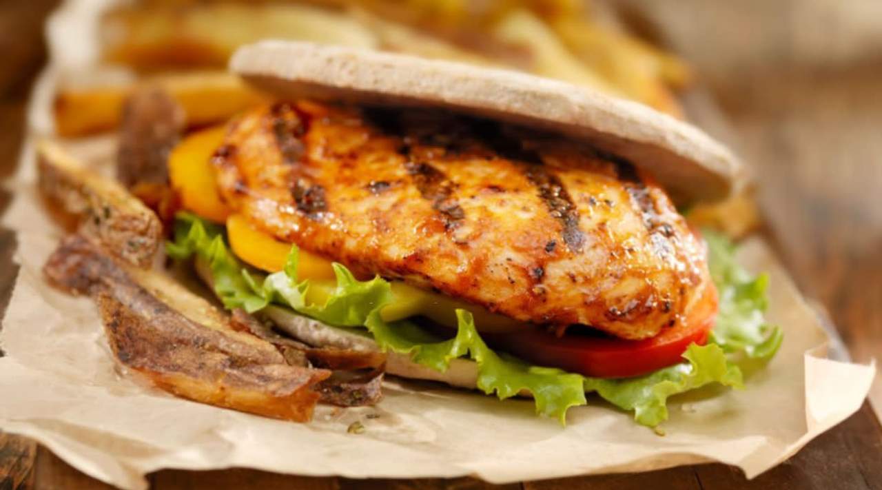 Delicioso pan gallego, con pechuga de pollo a la plancha y queso
