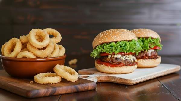 Hamburguesa de pan brioche, carne de buey, lechuga, tomate, cebolla y mayonesa. Alérgenos: gluten, huevo, soja y lácteos.