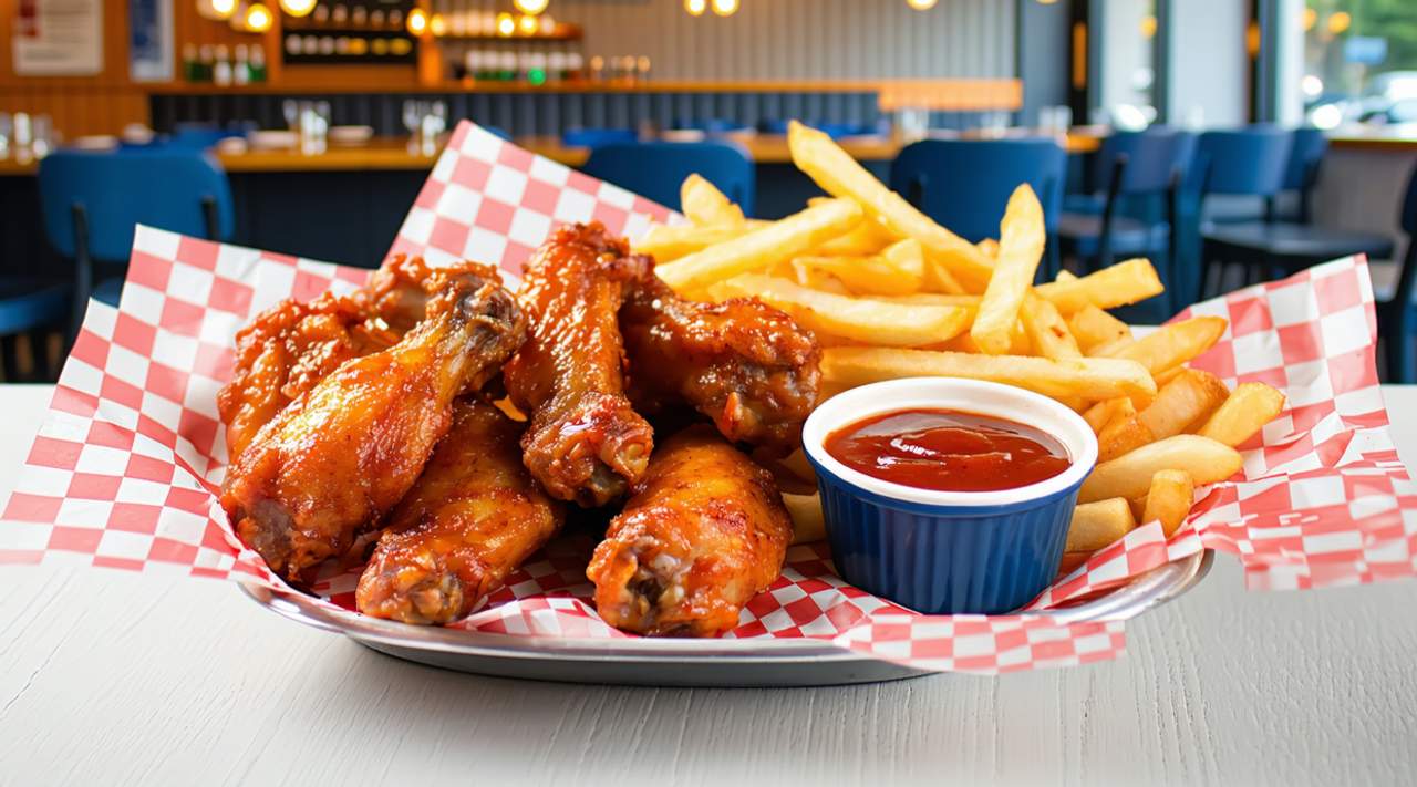 Pollo krispy, lechuga, tomate, queso, bacon, huevo y acompañado de patatas fritas