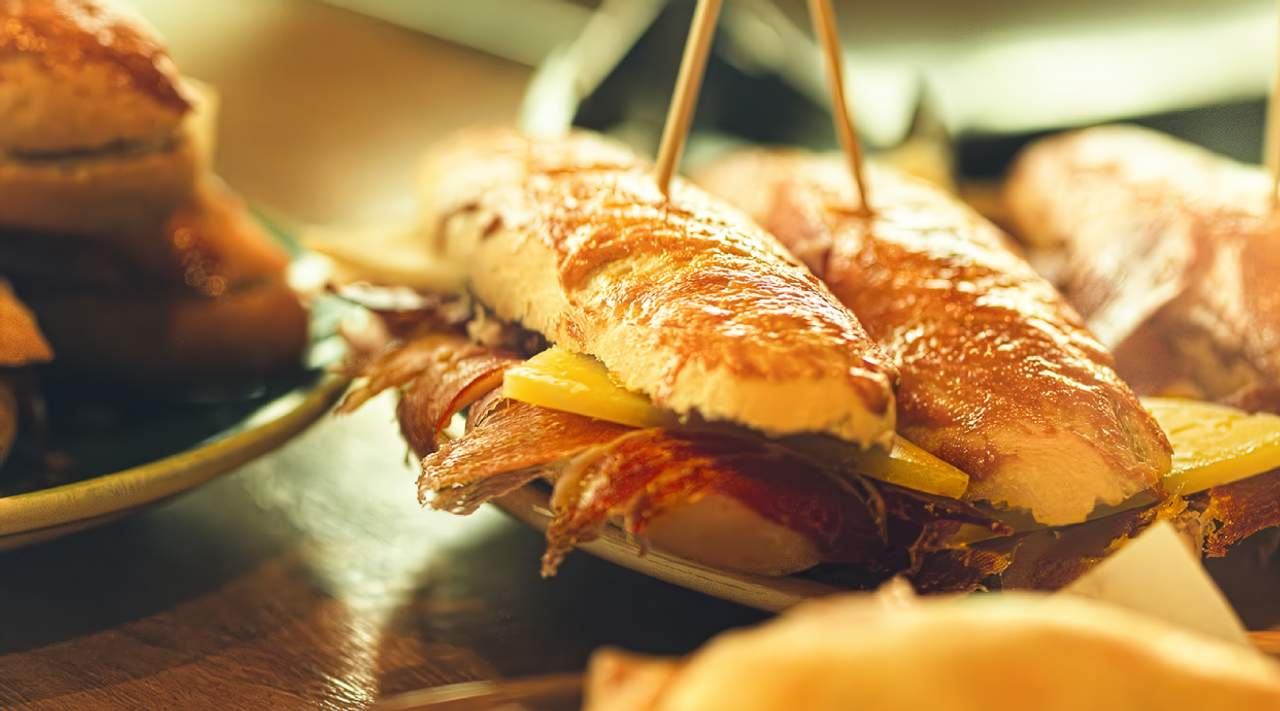 Bikini trufado jamón ibérico y mozzarella ( con patatas fritas)