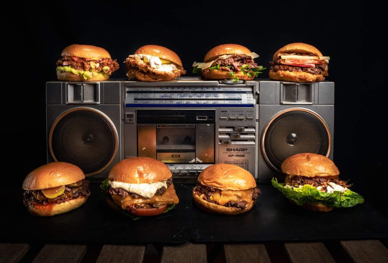 Doble Smash Burger de vacuno madurado con cebolla crujiente, pepinillo, queso cheddar, bacon en virutas, salsa BBQ (de Jack Daniels y coca cola).