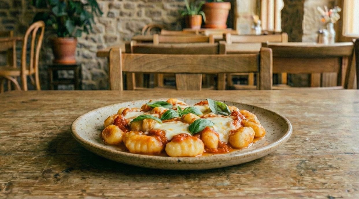 Ñoquis de patata con salsa de tomate y mozzarella fundida