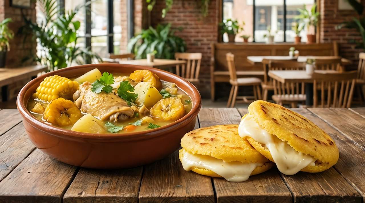 Arepa de maíz con chicharrón, chorizo, queso, carne y pollo.