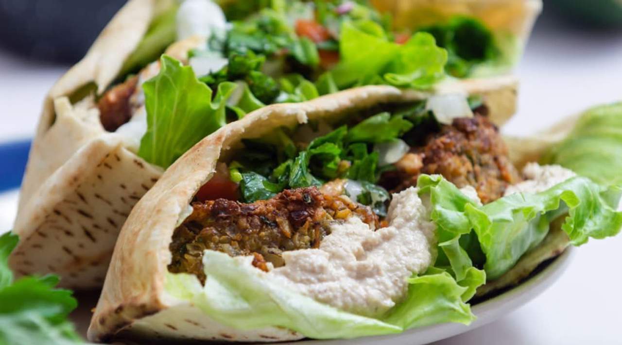 Plato vegetal con falafel (5 uds.), patata pan pita y salsa