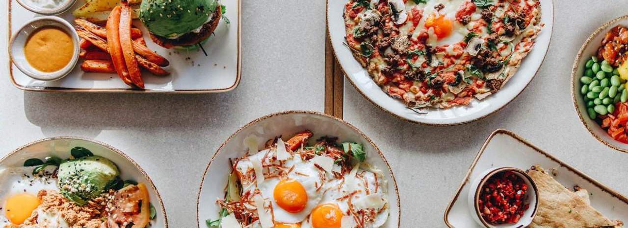Nuestra pizza de quinoa sin harinas, con ingredientes directos desde la huerta y pesto vegano de almendras. Hazla vegana pidiendo queso vegano.
