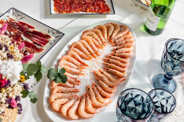 Ni flores, ni bombones: ¡gambas es la mejor opción! Y desde luego, mucho más original para esa cita romántica que tienes en mente Recibe en casa, dentro de 30 minutos, una doble ración (500 gr) de gambas blancas de Huelva, recién cocidas, junto con una botella de Cava Rosé Freixenet bien fría. Es un todo al rosa: el cava, la cita, las gambas... ¡Triunfar ya es cosa tuya!