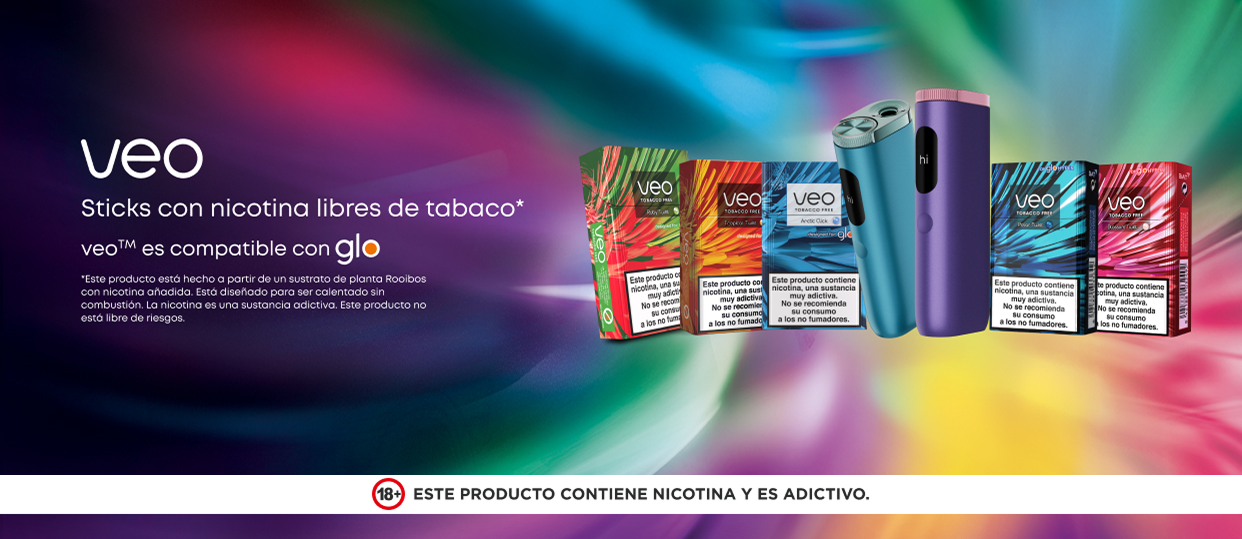 glo™ es un dispositivo electrónico que calienta sticks, evitando la combustión. veo ™ son sticks de nicotina hechos de planta Rooibos. Compatibles con los dispositivos glo™.