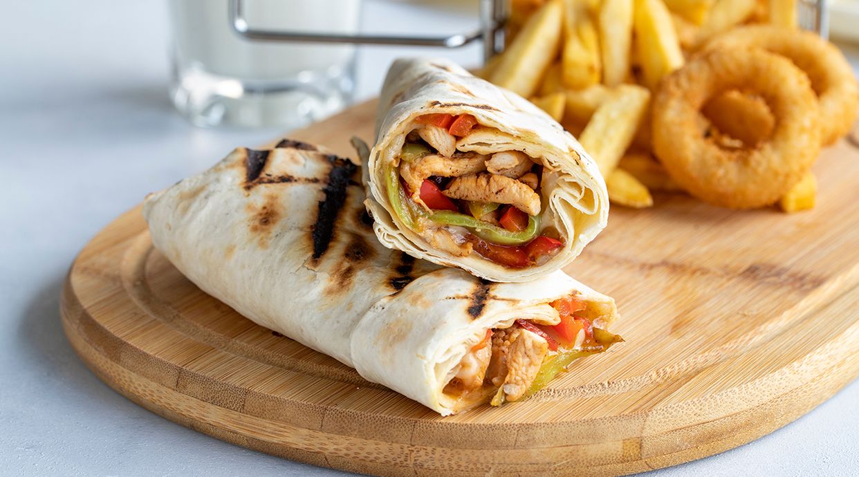 Kebab enrollado en pan durum, a elegir entre pollo, ternera o mixto