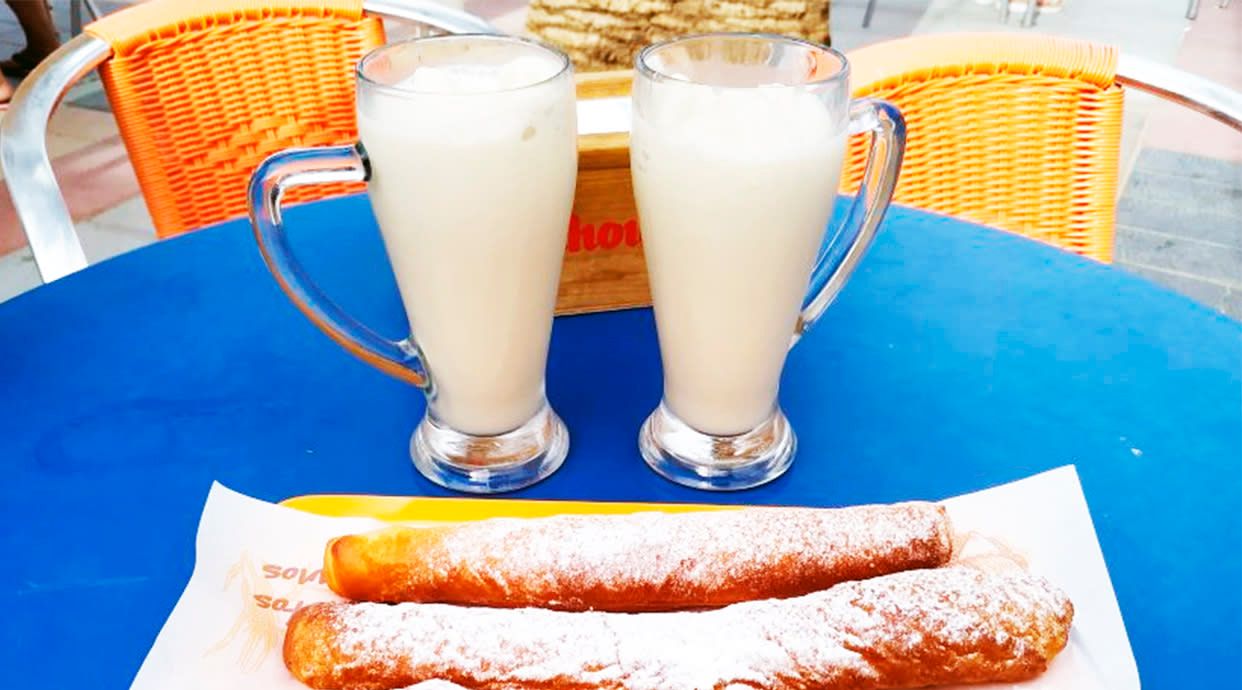 Horchata (1 lt.) +fartons (2 uds.) + rellenos de chocolate (2 uds.) + rellenos de crema (2 uds.)