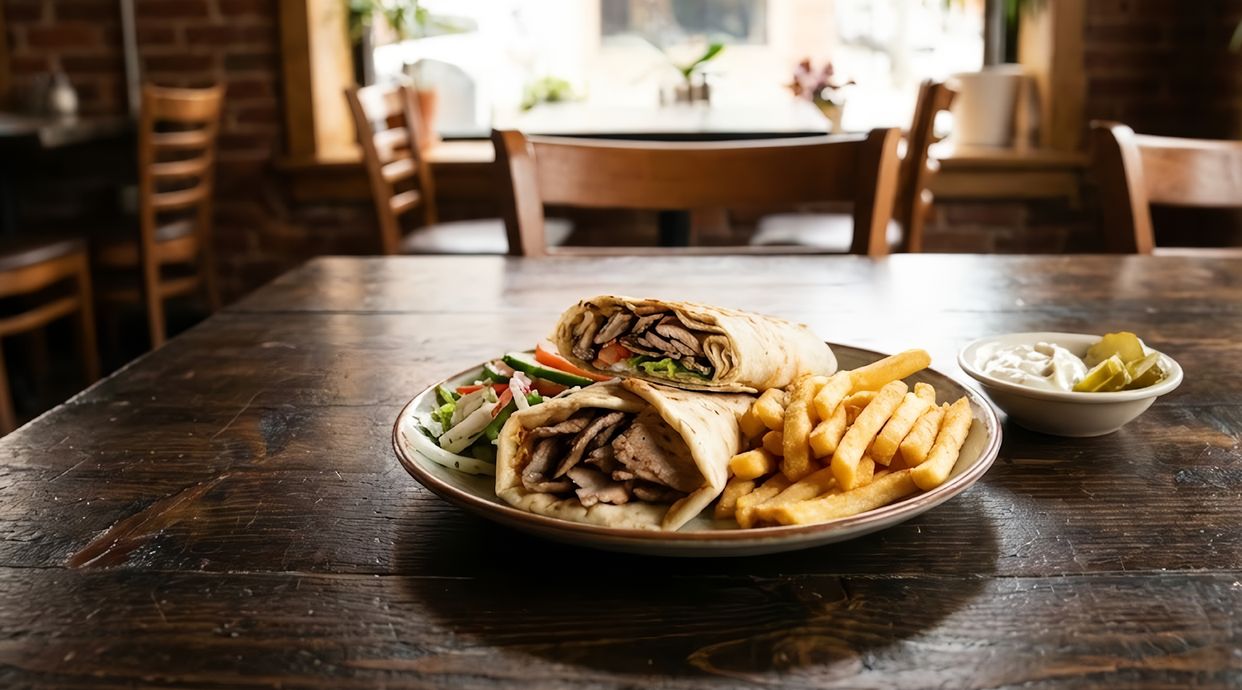 Carne de kefta especiada envuelta en naan, perfecta para los amantes de los sabores intensos