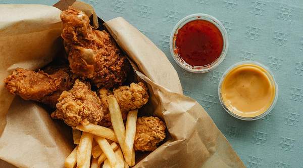 3 tiras de pollo picantes y jugosas. Con nuestras patatas SuperCrispy y salsita a elegir.