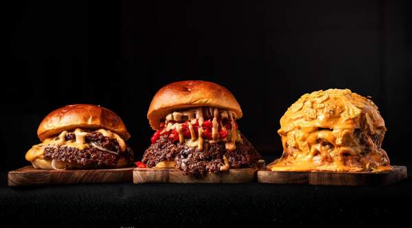 Burger 3 carnes de vaca de 100 gr ,queso americano, cebolla blanca, pimientos caramelizados, jalapeños, bacon, salsa de chipotle trufada. Patatas de la casa + Bebida a elección.