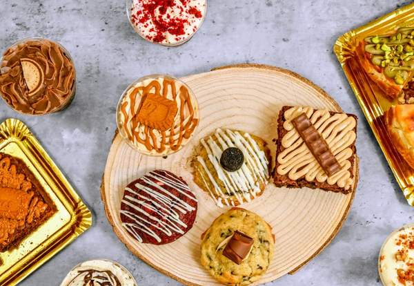 La Taylor sorprende a todos con una Cookie artesanal, crujiente por fuera y suave por dentro, con pepitas de chocolate negro, rellena de crema de cacahuete y caramelo.