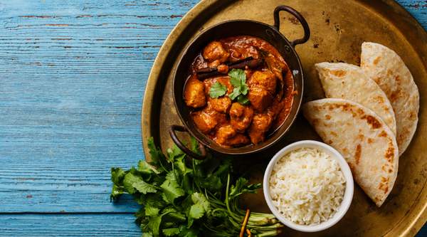 Para 2 personas. 3 Pan naan indio y plato de pollo picante