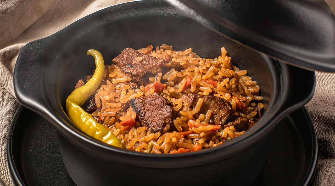 Una sabrosa y cremosa ensaladilla a base de ternera, cebolla roja marinada, cilantro y crutones