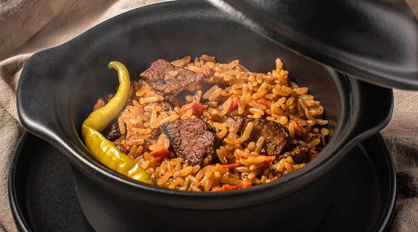 Sopa tailandesa picante con langostinos y mejillones acompañada con arroz