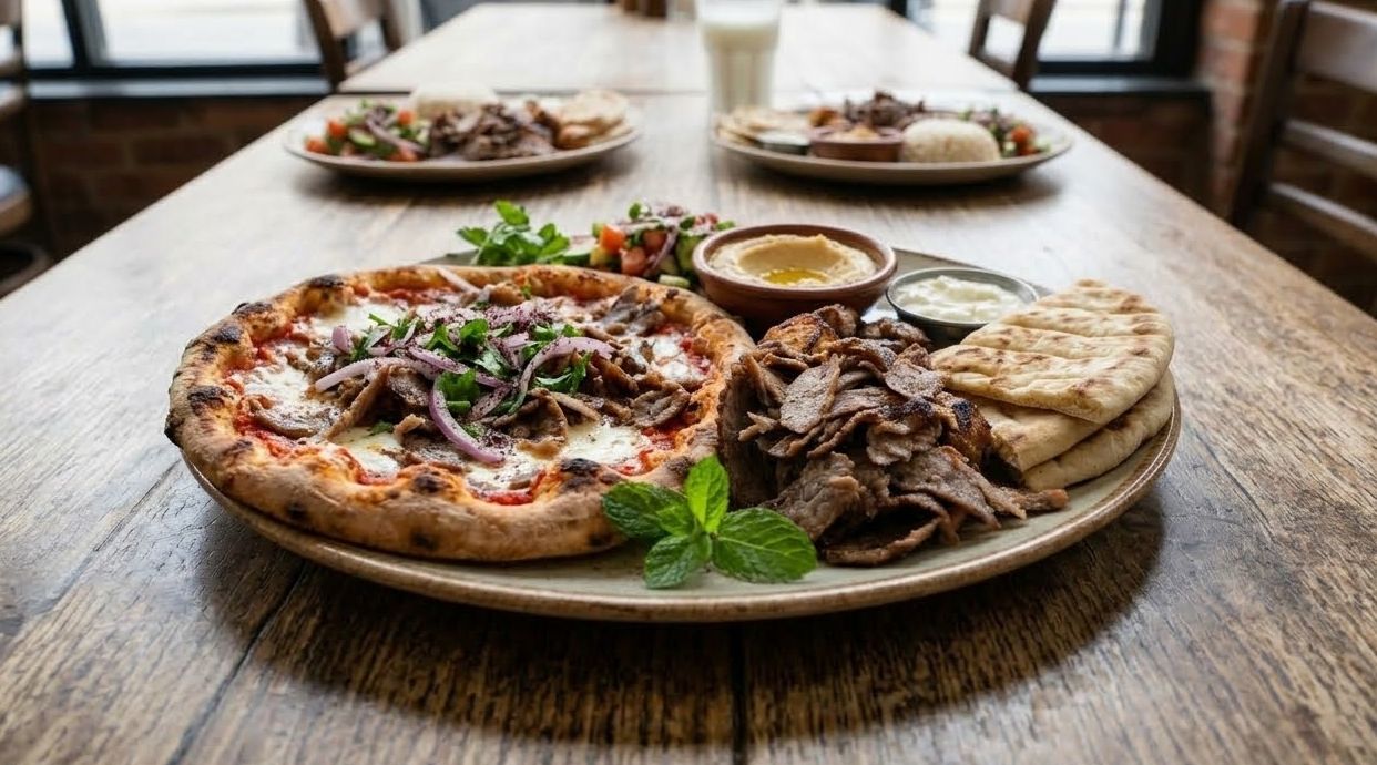 Salsa tomate, mozzarella, carne de kebab (pollo, ternera o mixto), cebolla, olivas y pimiento
