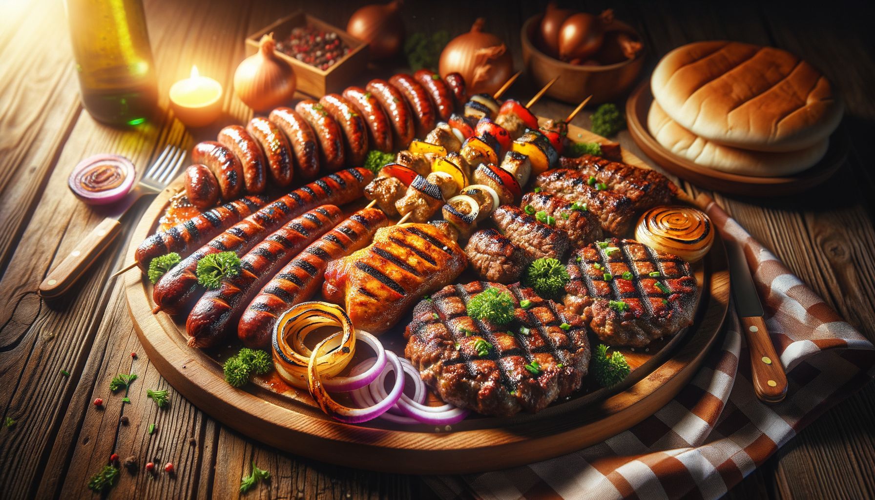 2 ćevapa, kobasica, vrat, uštipak, ražnjići, batak, pola somuna i pomfrit