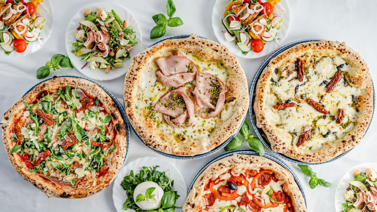 Gorgonzola Dolce D.O.P., svježi bosiljak, dimljena provola, mozzarela fior di latte, Grana Padano D.O.P., malinovo ulje