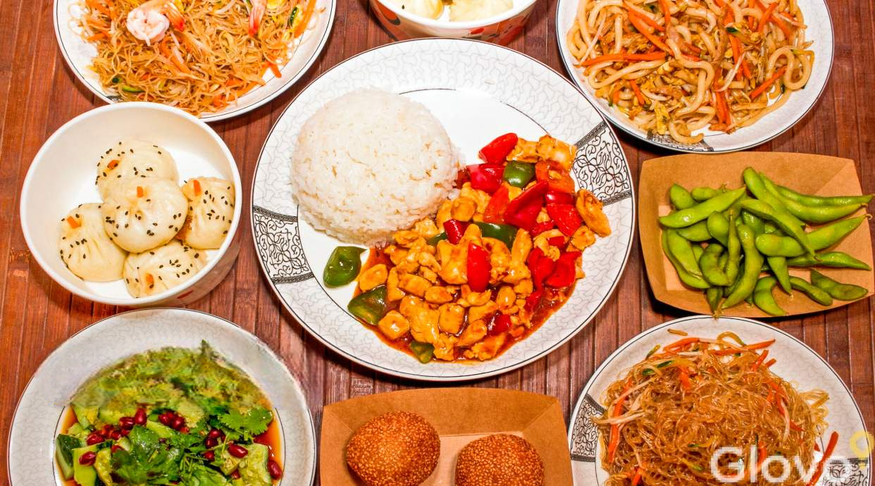 Ravioli al vapore ripieni di cavolo cinese e spaghetti di riso