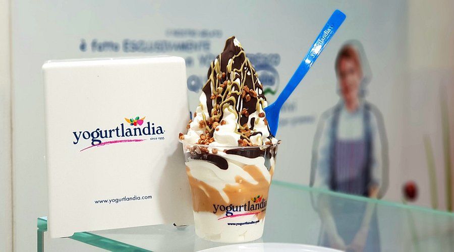 soffice gelato fatto con yogurt fresco in abbinamento fino due gusti a scelta tra le creme al cioccolate o le glasse alla frutta più aggiunta di granella