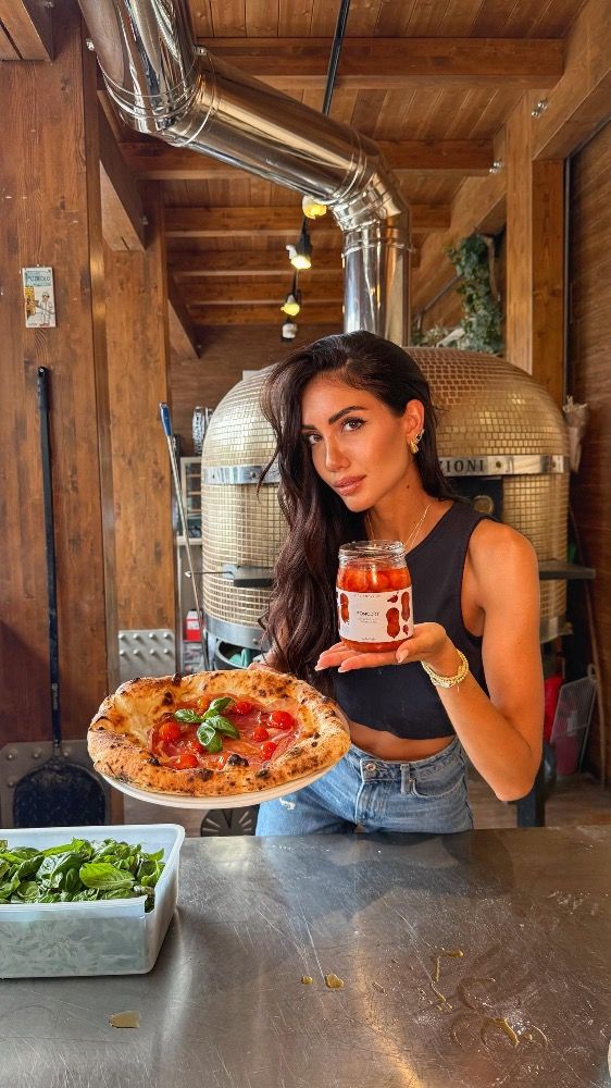 Pomodoro San Marzano DOP, ricotta di bufala, provola, prosciutto cotto alta qualità, funghi di stagione spadellati e pepe nero e basilico