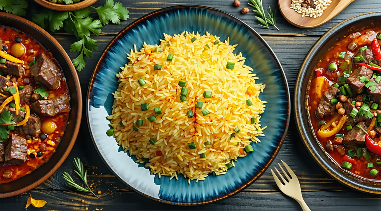 Spiced rice with meat (chicken or beef).