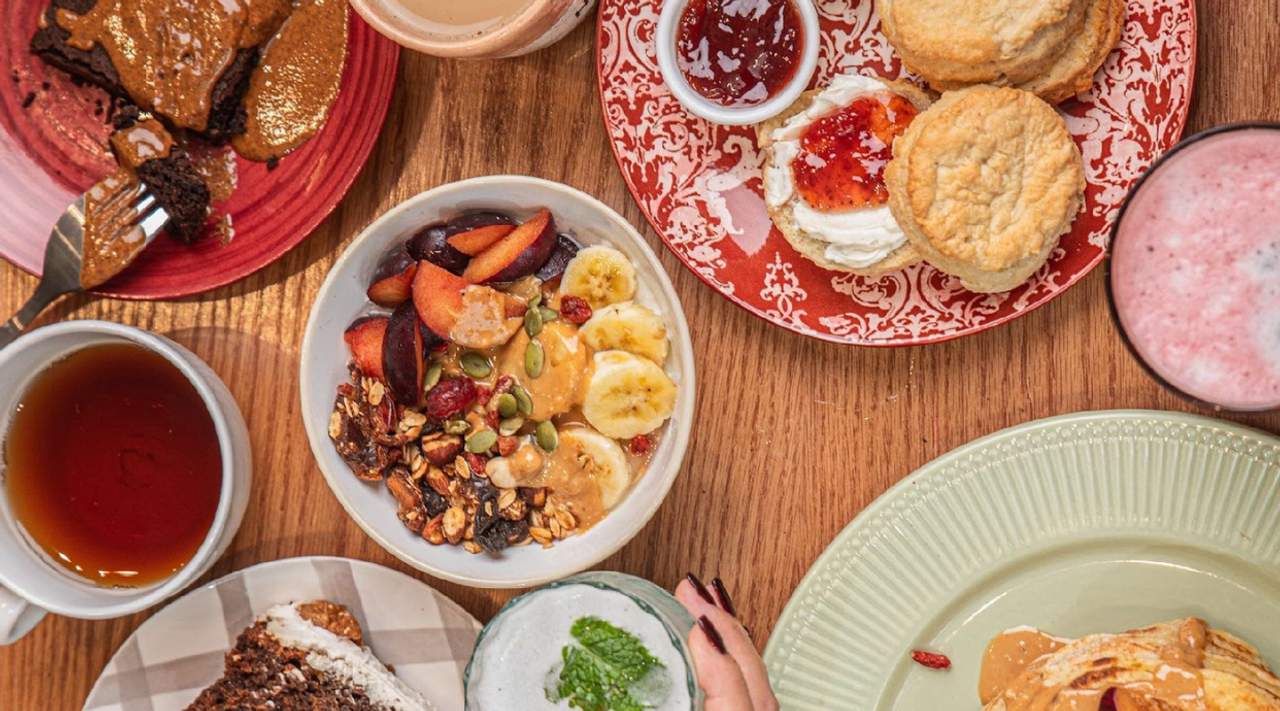 Pancakes du chef servis avec jus de citron ou jus de carotte, accompagnés au choix de beurre de cacahuète, beurre salé ou fruits frais