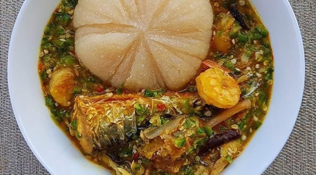 Efforiro Kpanla: Eforiro + Kpanla Fish + Pounded Yam