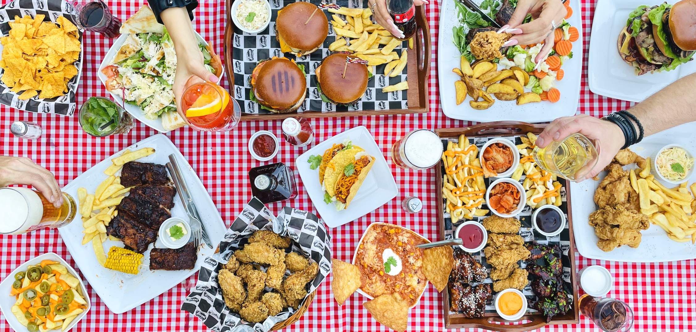 Pół porcji wędzonych żeberek glazurowanych sosem Jack Daniel’s, 6 skrzydełek z sosem Jack Daniel’s, 2x Coleslaw, 2x Duże frytki posypane sekretną przyprawą i szczypiorkiem, sos Jack Daniel’s