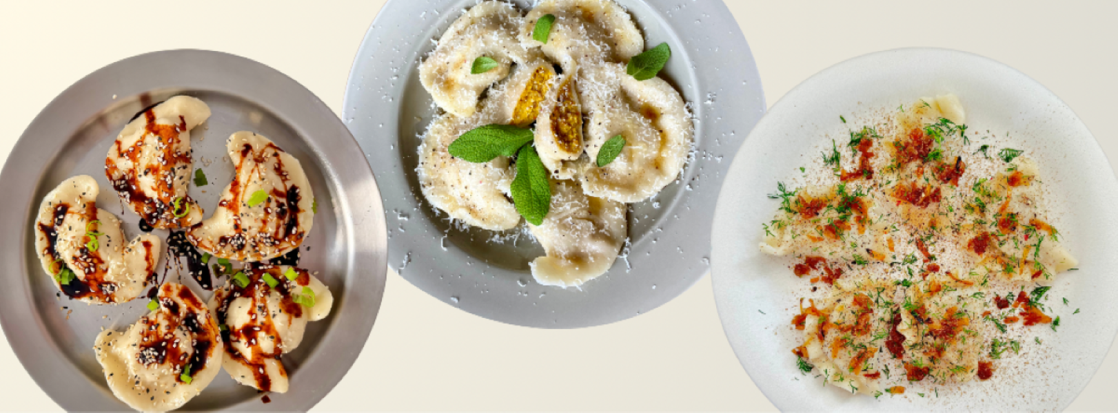 Pierogi z ziemniakami, fetą, miodem i chipotle