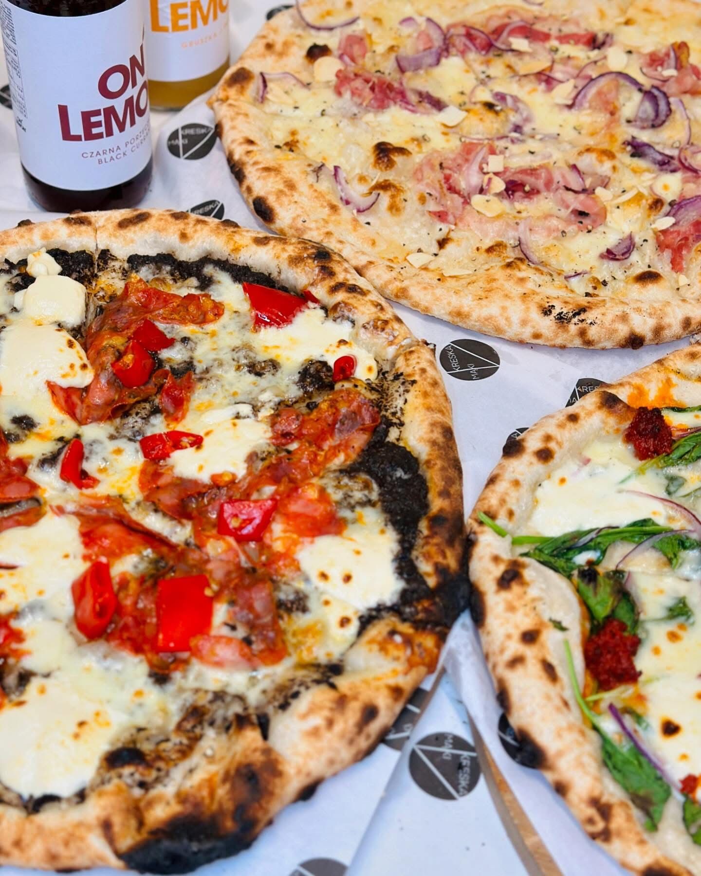 sos smietanowy, płatki chilli, mozzarella, parmezan, gorgonzola, ricotta, bazylia