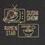 makaron ramen, bulion, bambus, inari, banan, dynia w tempurze, pomidor, wakame, nori