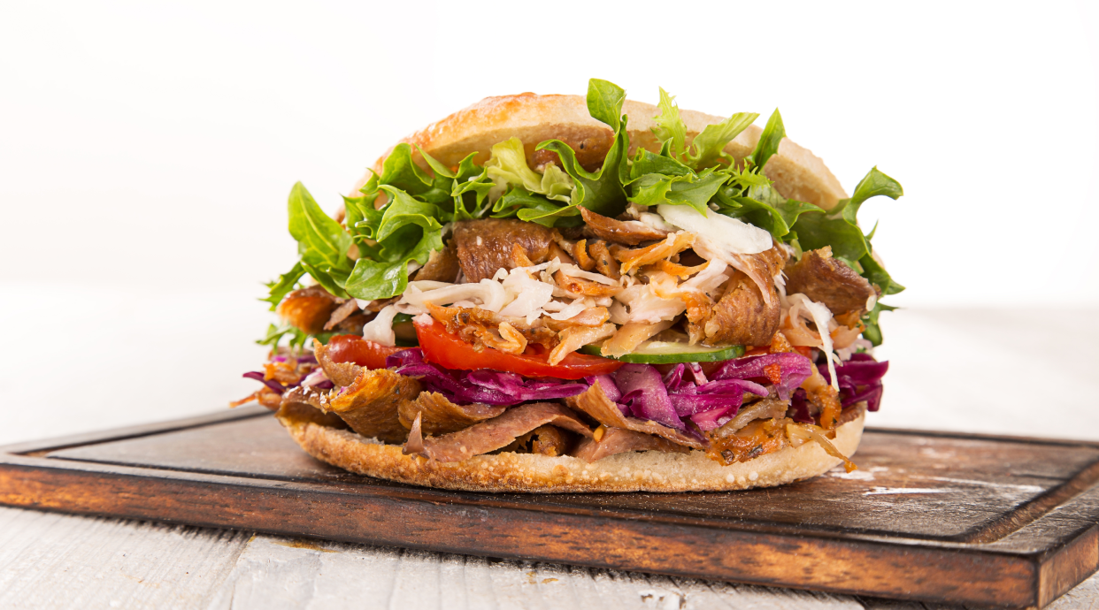 Klasyczny kebab w miękkiej tortilli. Grillowane, aromatyczne mięso (kurczak, wołowina lub mix), świeże warzywa i pyszne sosy tworzą idealne połączenie smaku. Syty i zawsze świeży.
