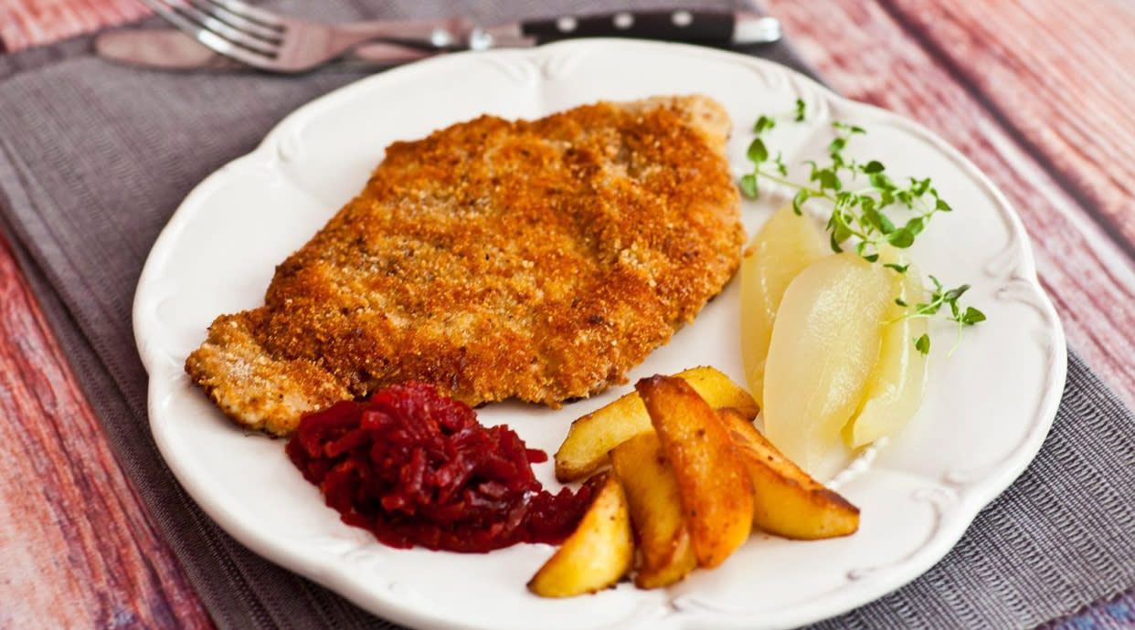 Podane z puree ziemniaczanym i opiekanymi warzywami korzeniowymi (seler, marchew, pietruszka)